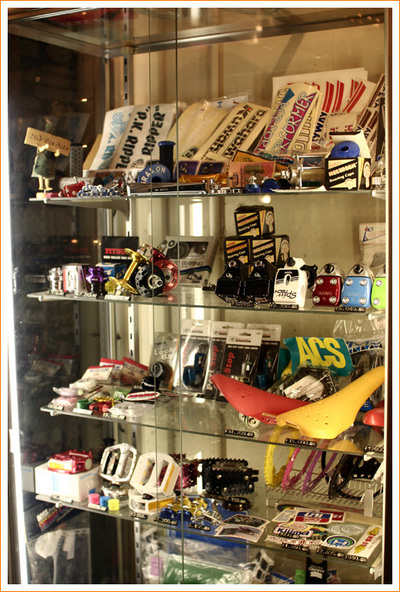 店内にはBMXオールドパーツを展示しているショーケースがあり、分かる人には感動もんだ、それがこれこれ