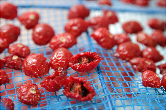 3日干した後にミニトマトをひっくり返してトマトの皮を乾燥させるようにしてみた。